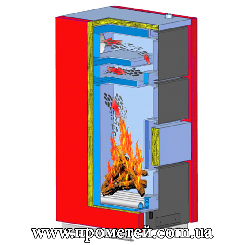 Изготовлен из жаропрочной стали 4 мм. Корпус утеплен минеральной ватой, т. е. потери тепла через стенки минимальные.