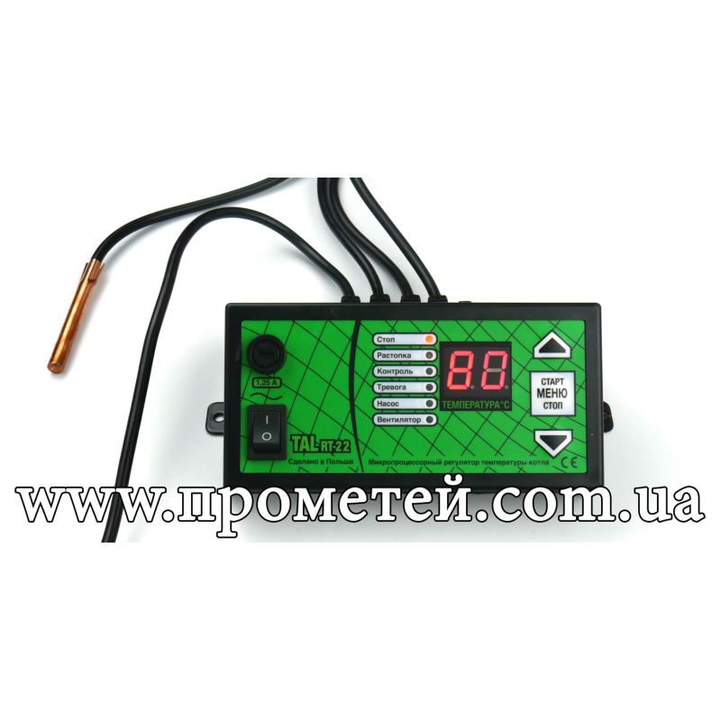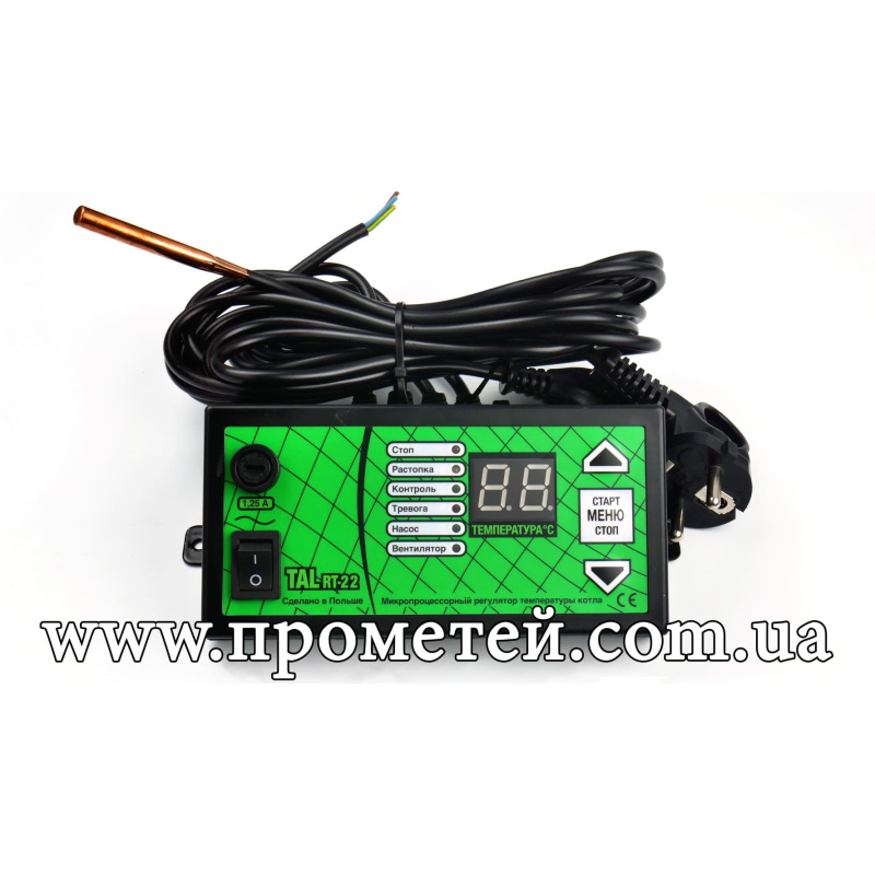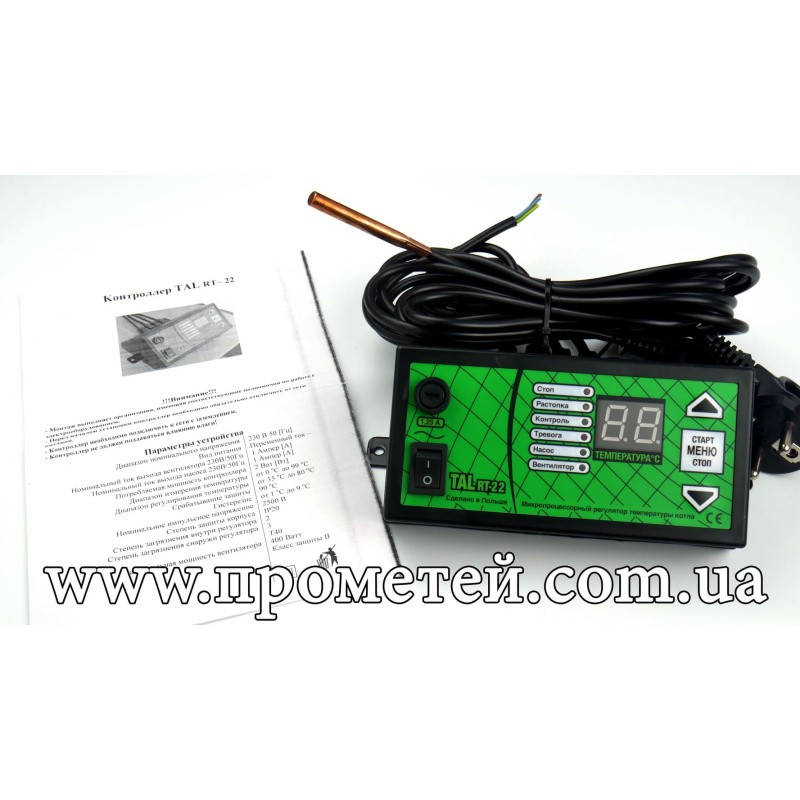 Контролер TAL RT-22 – автоматичний терморегулятор для керування твердопаливним котлом з ручною загрузкою. Управляє роботою вентилятора та циркуляційного насоса контура опалення, забезпечуючи оптимальний режим горіння та економію палива.