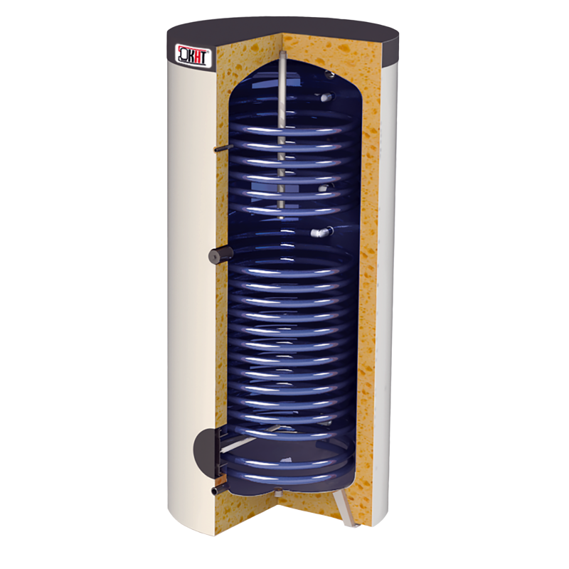 - Енергоефективність та економія – можливість підключення сонячного колектора до нижнього змійовика дозволяє отримувати безкоштовну енергію сонця, знижуючи витрати на ГВП до мінімуму в теплий сезон.
