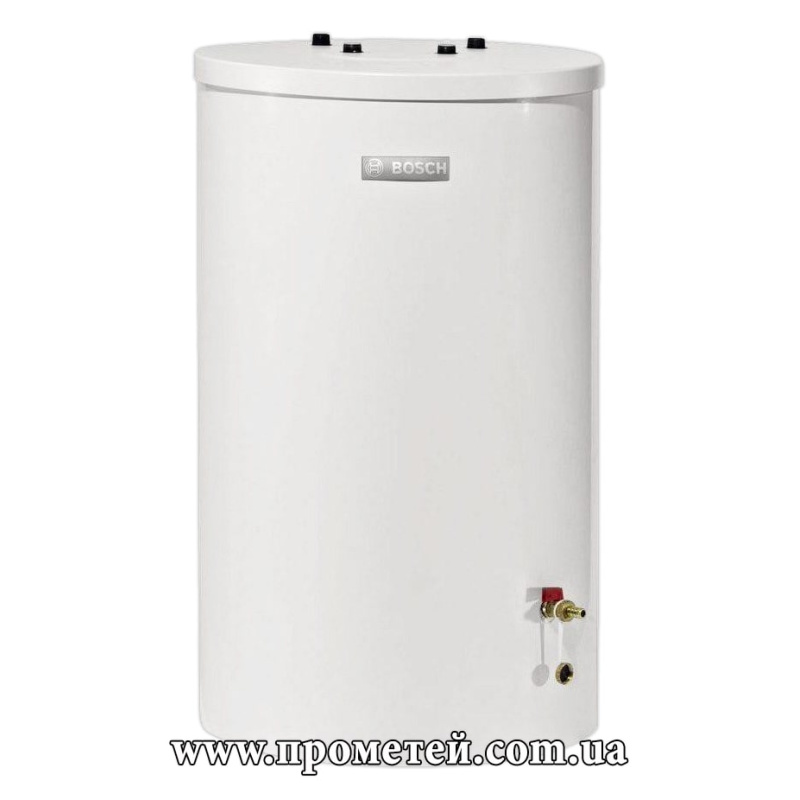 Bosch WST 120-5O – цилиндрический бойлер косвенного нагрева с эмалированным змеевиком и рабочим баком на 120 л. Устанавливается на пол непосредственно под отопительным котлом. Подключаемые патрубки находятся сверху.