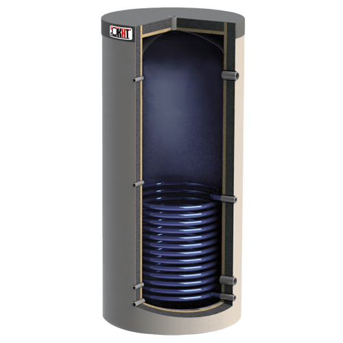 Нижній теплообмінник ідеально підходить для підключення сонячних колекторів, які в денний час нагрівають теплоносій у баку, а надлишкове тепло акумулюється для використання ввечері та вночі.