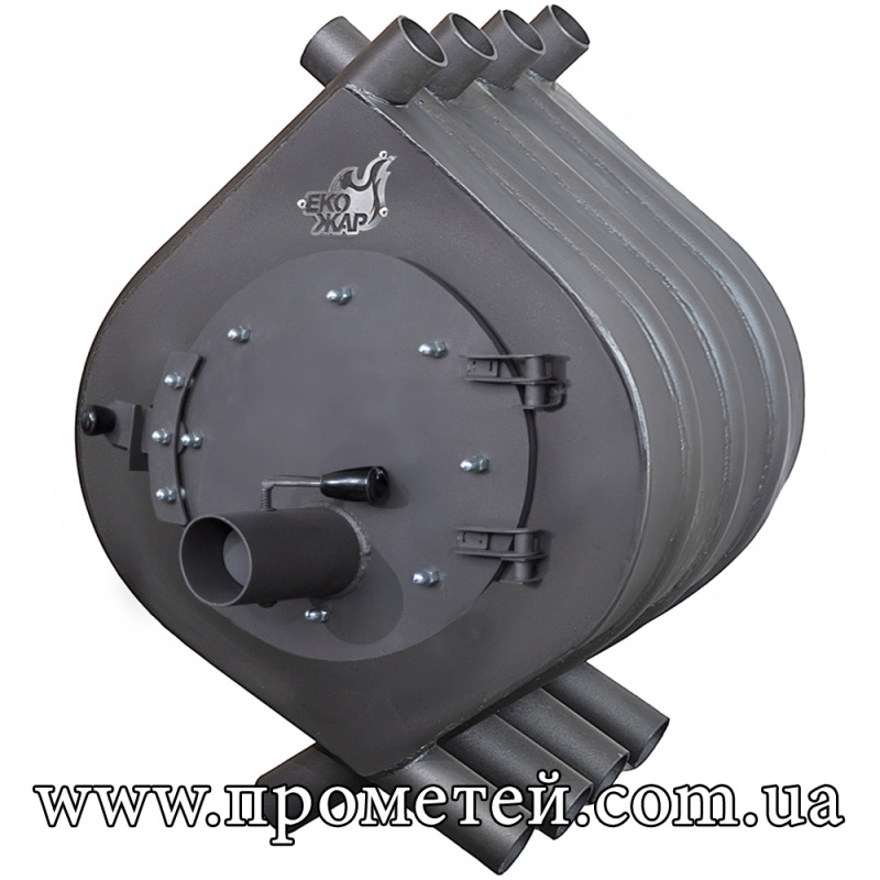 - Тривалий час утримання тепла навіть після згасання активного горіння завдяки масивній конструкції та акумуляції тепла металом
