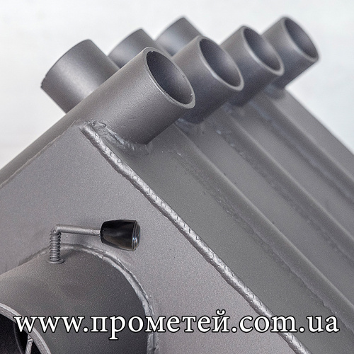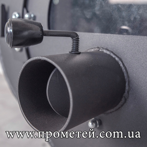 - Процес горіння регулюється двома заслінками – для подачі повітря та виходу димових газів.