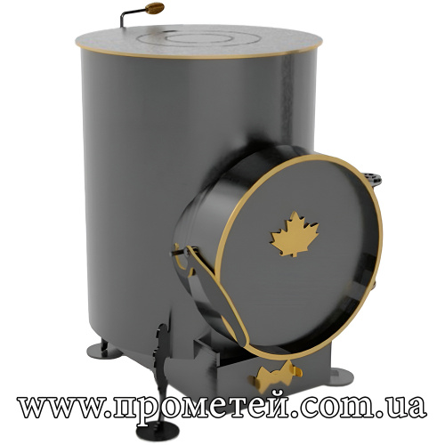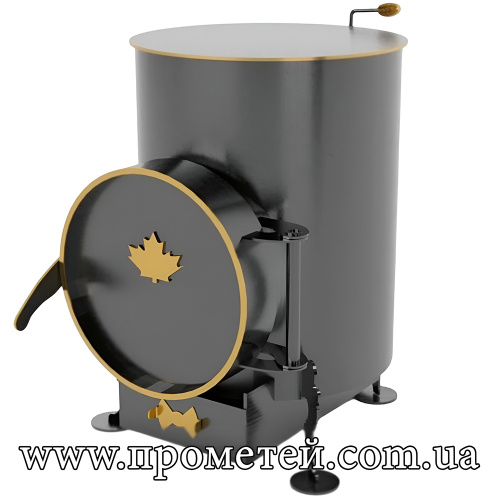 Корпус печі виготовлений з якісної сталі 3 мм та має стильний циліндричний дизайн з декоративними елементами у вигляді золотистого канту та кленового листа на дверцятах. Корпус печі пофарбований кремнійорганічною термостійкою фарбою.