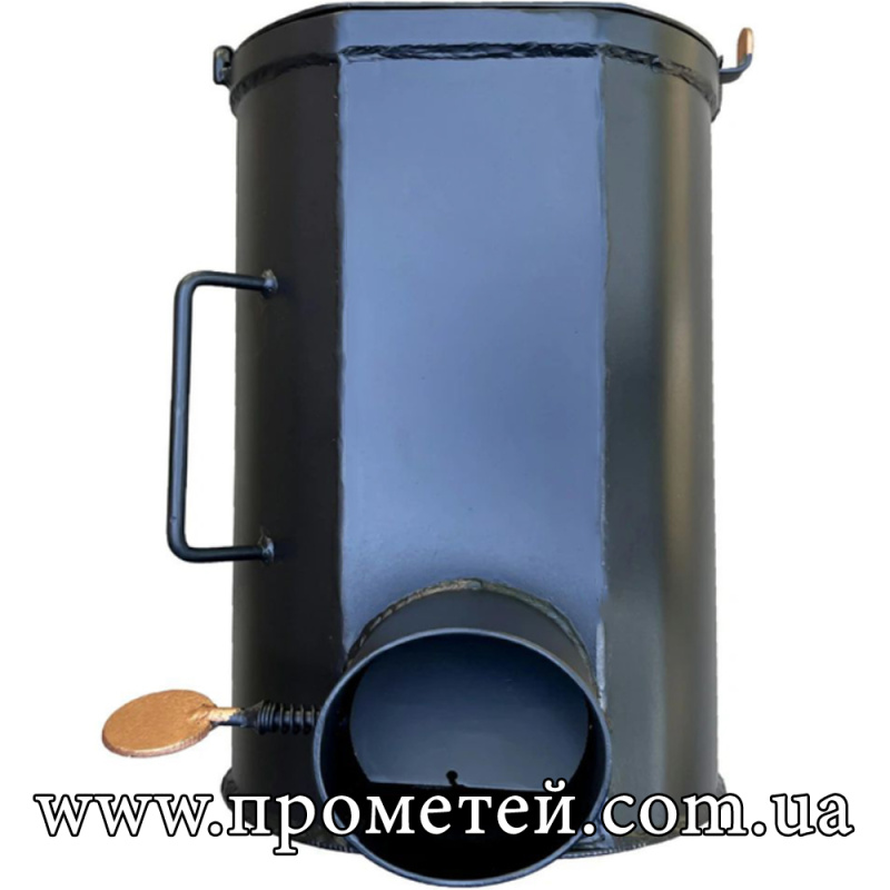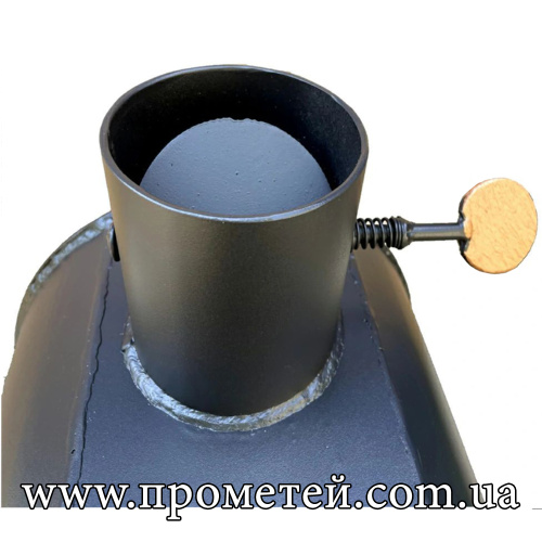 Завдяки компактним розмірам піч легко транспортується в багажнику автомобіля. Димохід діаметром 100 мм та довжиною 3 метри забезпечує стабільну тягу та швидкий монтаж у польових умовах.