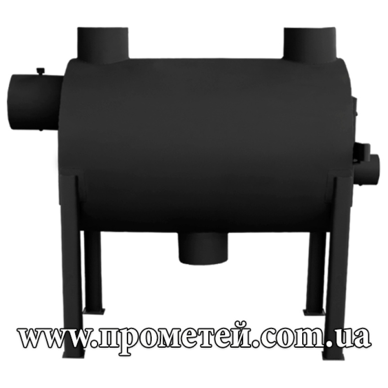 Дров'яна піч буржуйка Екожар Про 350 вертикальна – ефективна дров'яна піч, розрахована на 6 годин роботи без дозавантажень. Призначений для опалення будинків, дач, теплиць, гаражів, інших господарських та комерційних приміщень до 350 м3. Вхідні та вихідні патрубки для подачі холодного та відведення гарячого повітря розташовуються вертикально.