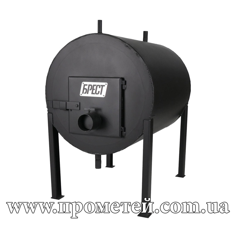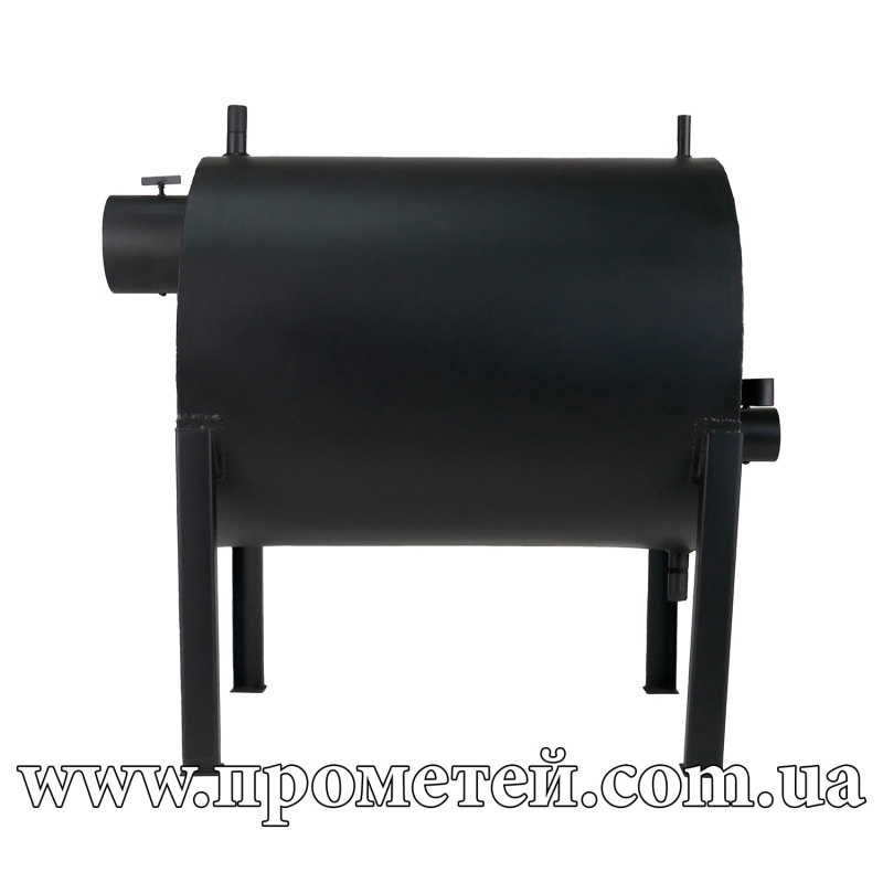 Работает на твердом топливе – дровах, топливных брикетах, отходах деревообработки.
