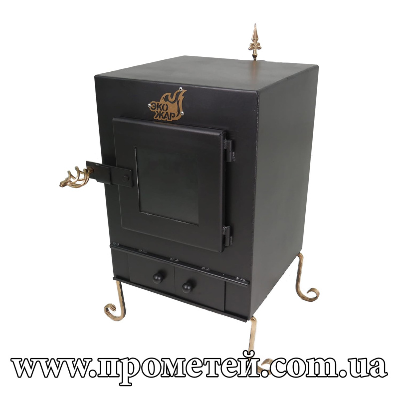 - ЕкоЖар Комфорт Плюс – піч-камін з жароміцним оглядовим склом та кованим декором.