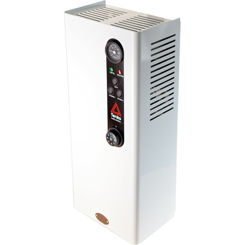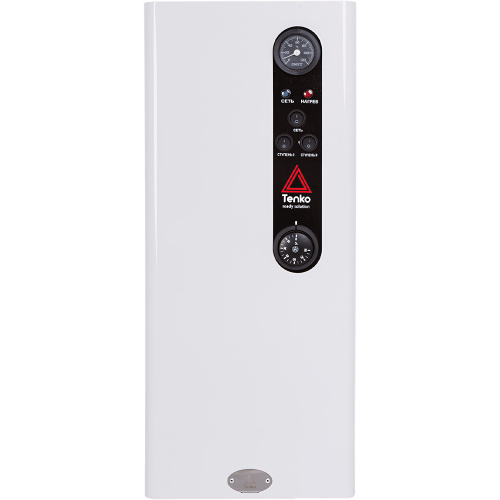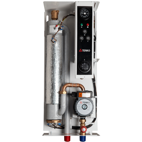 Tenko Стандарт 10,5 – котел з тришвидкісним вбудованим насосом і триступеневим регулюванням потужності, який дозволяє вручну вибирати кількість працюючих ТЕНів для оптимального навантаження на електромережу. Має італійський термостат IMIT і гідрогрупу безпеки з мідними фітингами для надійної роботи. Відноситься до лінійки Tenko СКЕ.