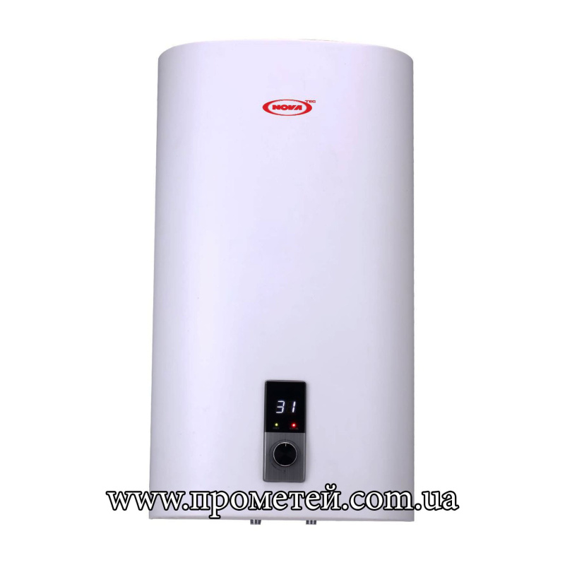 Бойлер NOVA TEC Flat 100 – компактний плоский електричний водонагрівач на 100 літрів із двома мокрими ТЕНами загальною потужністю 2 кВт. Завдяки плоскому корпусу та глибині всього 24 см легко вписується навіть у найтіснішу ванну кімнату.