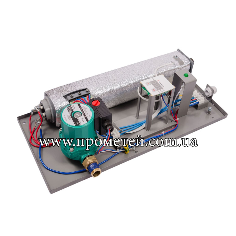 Котел комплектується датчиком температури, електронним терморегулятором та вбудованим циркуляційним насосом Sprut. Сумісний із кімнатним термостатом.