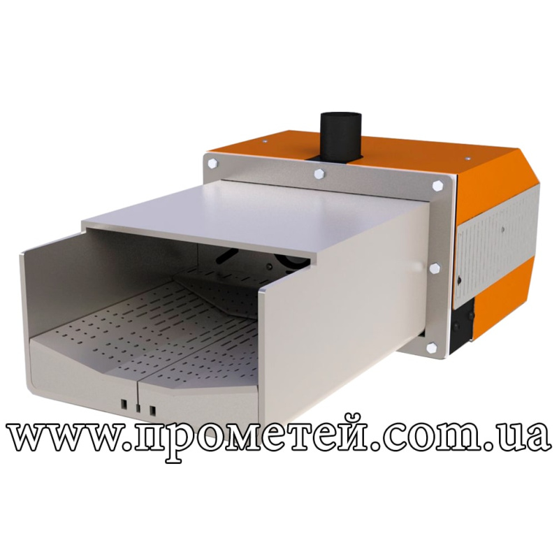 Пальник оснащений системою ворошення палива та рухомими колосниками, які забезпечують рівномірну циркуляцію повітря та якісне спалювання пелет.