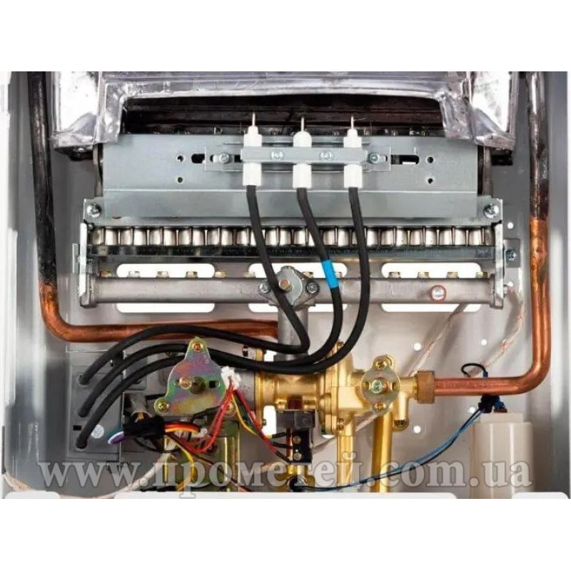дисплей, індикація температури нагріву, регулювання температури води, регулювання циркуляції газу, датчик високого тиску води, датчик наявності полум'я, датчик перегріву води, захист від замерзання