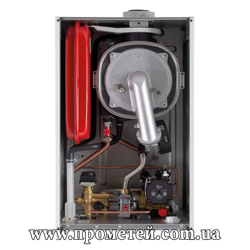 Газовий пальник також сталевий. Із модуляцією горіння з коефіцієнтом 1:7 та повним попереднім змішуванням газу з повітрям, що забезпечує максимально ефективне спалювання палива.