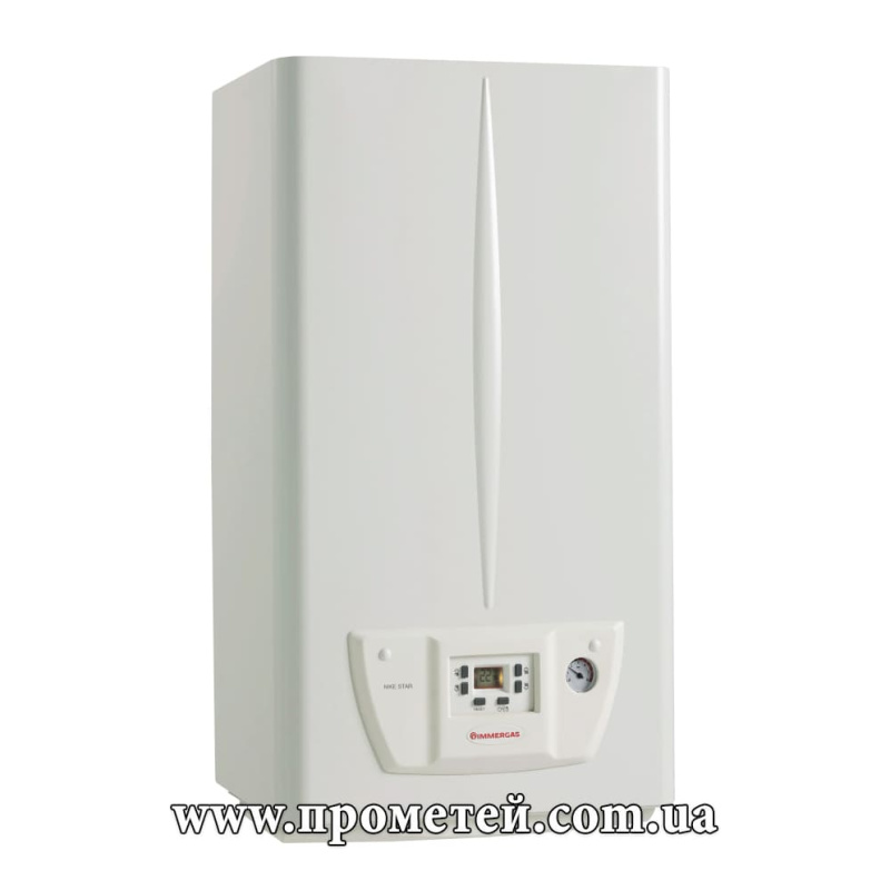 Immergas Nike Star 24 4E – навісний двоконтурний газовий котел із відкритою топкою, мідним бітермічним теплообмінником та панеллю керування з РК-дисплеєм. Завдяки компактним габаритам (глибина корпусу всього 24 см) підходить для невеликих приміщень. Призначений для опалення та забезпечення гарячого водопостачання будинків, побутових і комерційних об'єктів до 240 м2.