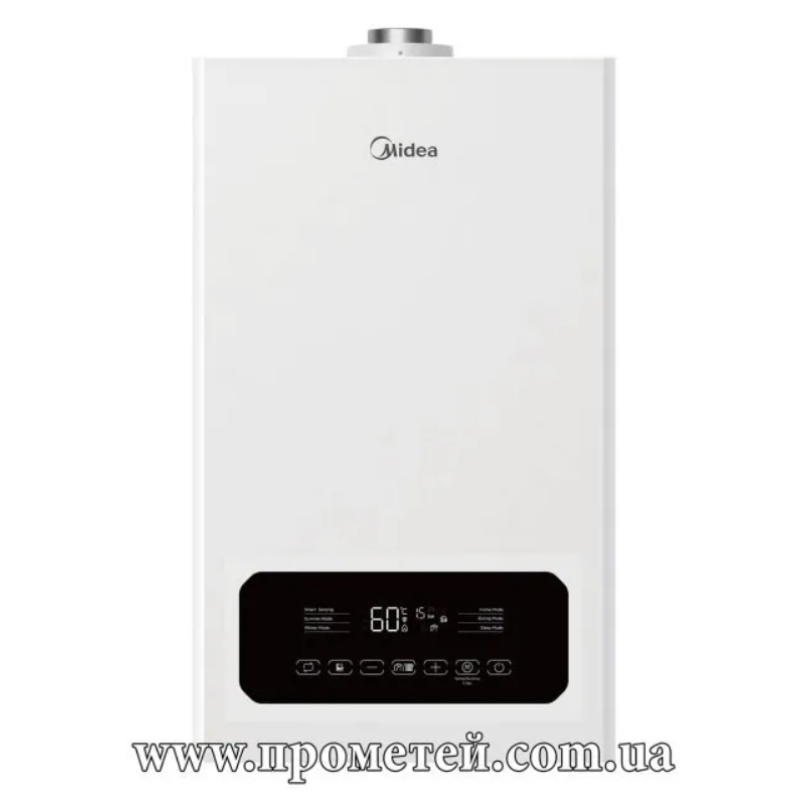 MIDEA L1GB24-C20WS – двухконтурный бездымоходный газовый котел, работает как на отопление, так и на приготовление горячей воды в проточном режиме. Не требует оснащения классическим дымоходом, так как отводит продукты сгорания и берет кислород через коаксиальную трубу, проходящую через стену. Рассчитан на отопление помещений до 240 м2.