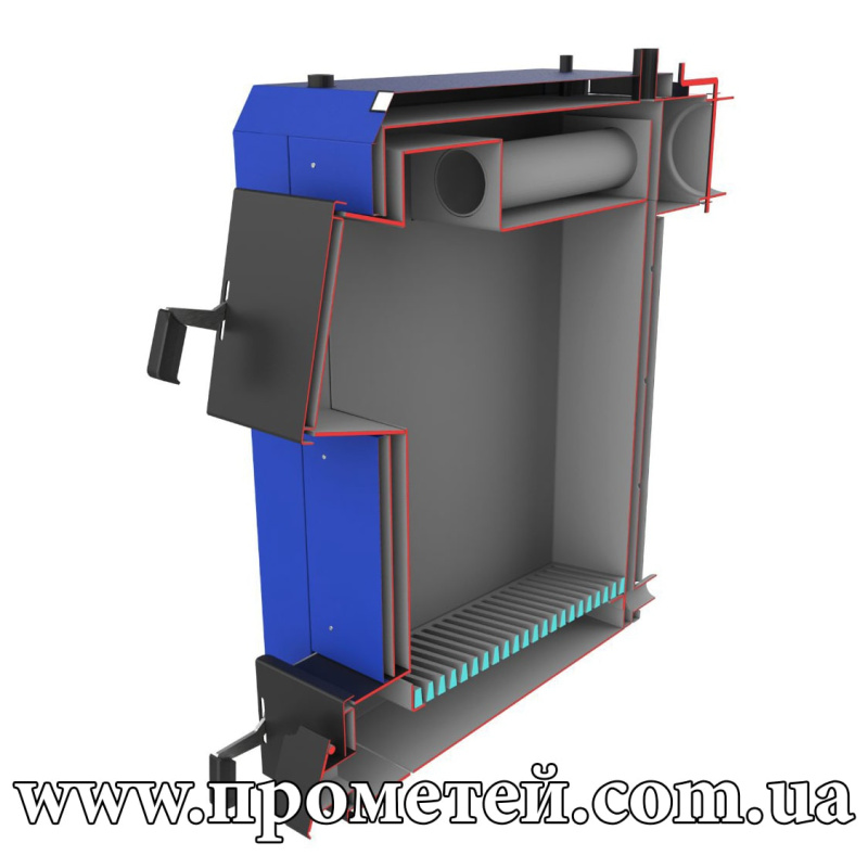 Теплообменник и топка выполнены из котловой стали 5 мм. Такой толщины стенок достаточно, чтобы котел прослужил до 15 лет без капитальных ремонтов.