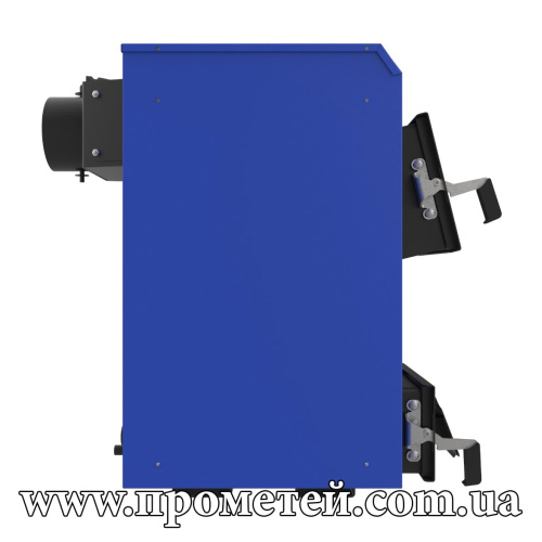 Котел можно укомплектовать механическим регулятором тяги или полноценной автоматикой (блоком управления и вентилятором для подачи воздуха в зону горения).