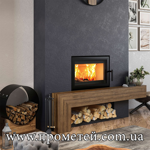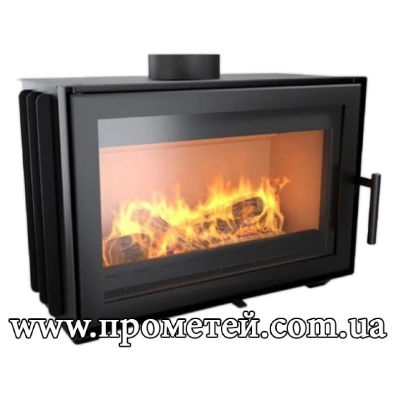 В дверцу по всей ее ширине врезано термостойкое стекло 35 x 56 см. Оно позволяет любоваться огнем и контролировать количество дров, не открывая раз за разом камин.