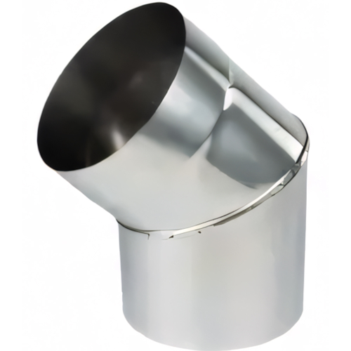 Коліно димохідне 45° одностінне діаметр 100-400 мм, з нержавіючої сталі AISI 321, товщиною 1мм – це базовий поворотний елемент неутепленої димохідної системи, призначений для плавної зміни напрямку димового каналу на кут 45 градусів. Цей вузол найчастіше використовується для акуратного обходу архітектурних перешкод, зміщення осі димаря або для стартового підключення опалювального приладу до основної магістралі. Завдяки "м'якому" куту повороту, коліно створює мінімальний аеродинамічний опір, забезпечуючи ідеальне та безперешкодне відведення газів.