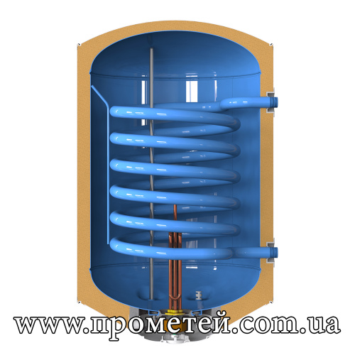 Бак оснащений мідним нагрівальним елементом та спіралеподібним непрямим теплообмінником. ТЕН (1,8 кВт) нагріває воду традиційним способом – за допомогою електрики. Перевага такого методу – швидкодія.