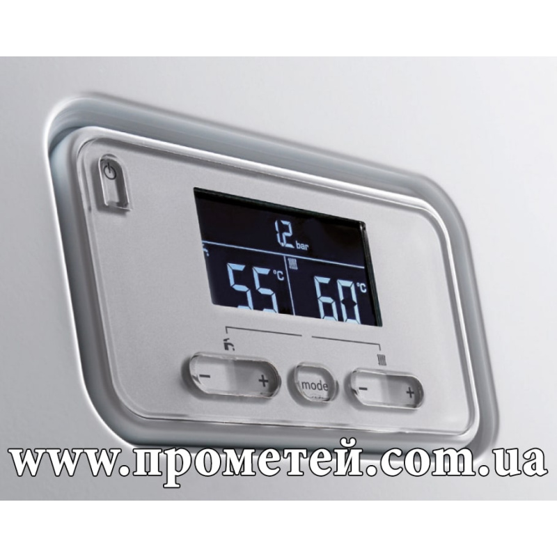 - LCD-дисплей з інтуїтивним керуванням забезпечує простий і зручний контроль роботи котла. Доступна функція діагностики несправностей, налаштування параметрів і перегляду історії помилок. Дисплей відображає інформацію з підсвіченими символами на темному фоні, в режимі очікування яскравість зменшується.