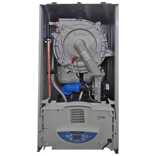 - Керування котлом та діагностика: панель керування оснащена чітким LCD-дисплеєм із підсвічуванням, на якому відображається поточна температура та режими роботи. Вбудована плата керування підтримує комунікаційний протокол BusBridgeNet, що дозволяє об'єднувати котел з іншими продуктами Ariston (наприклад, сонячними системами або модулями керування багатозональним опаленням). Система самодіагностики миттєво виводить коди помилок на екран, що спрощує сервісне обслуговування та дозволяє користувачеві швидко отримати інформацію про стан обладнання.