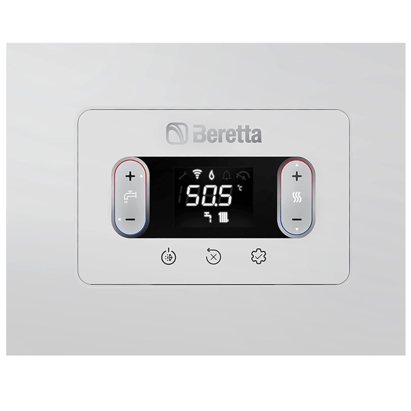 - Управление котлом и диагностика: котел оборудован инновационной сенсорной панелью управления (Touchpad) с подсветкой и встроенным цифровым дисплеем. Пользователь может легко настраивать температуру отопления и горячей воды, а система звукового подтверждения нажатия кнопок и пиктограммы вместо текстов делают процесс управления интуитивно понятным. Встроенная система самодиагностики постоянно мониторит состояние узлов и в случае неисправности выводит соответствующий код на экран, что упрощает техническое обслуживание.