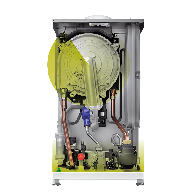 - Газовые технологии и модуляция: в котле установлена горелка с полным предварительным смешиванием газа и воздуха, что обеспечивает стабильное горение и высокую экономичность. Широкий диапазон модуляции мощности 1:8 позволяет котлу плавно снижать потребление энергии, когда потребность в тепле минимальна (например, в теплую погоду). Это предотвращает частые циклы включения и выключения горелки, что уменьшает износ автоматики и помогает экономить топливо.