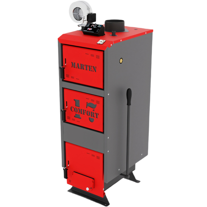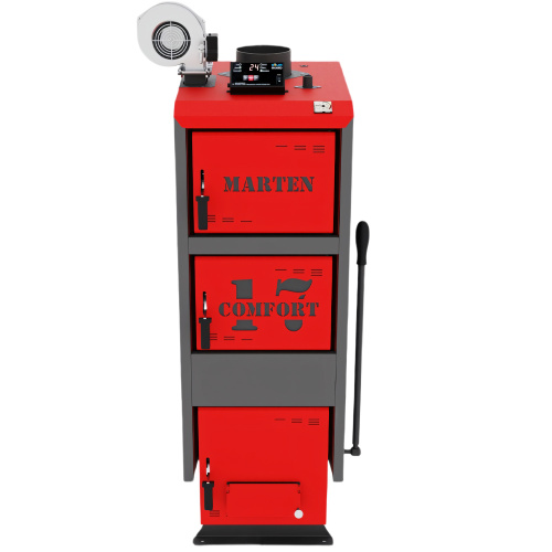 Marten Comfort 17 – твердотопливный котел длительного горения, тепловая мощность которого позволяет отапливать помещение до 170 м2. Управляется с помощью электронного регулятора температуры. Подходит для отопления жилых, бытовых, коммерческих объектов с системой центрального отопления.