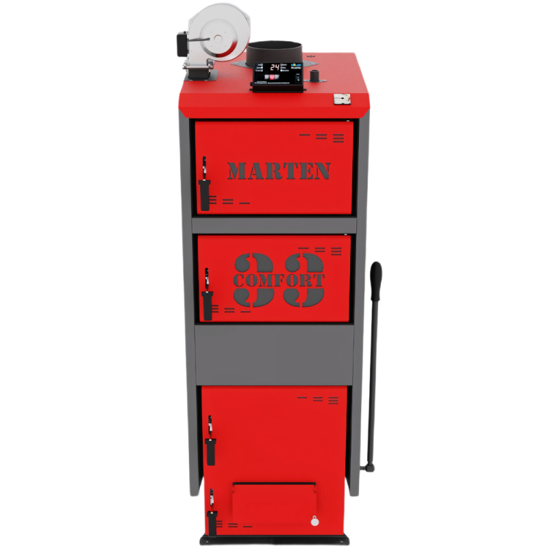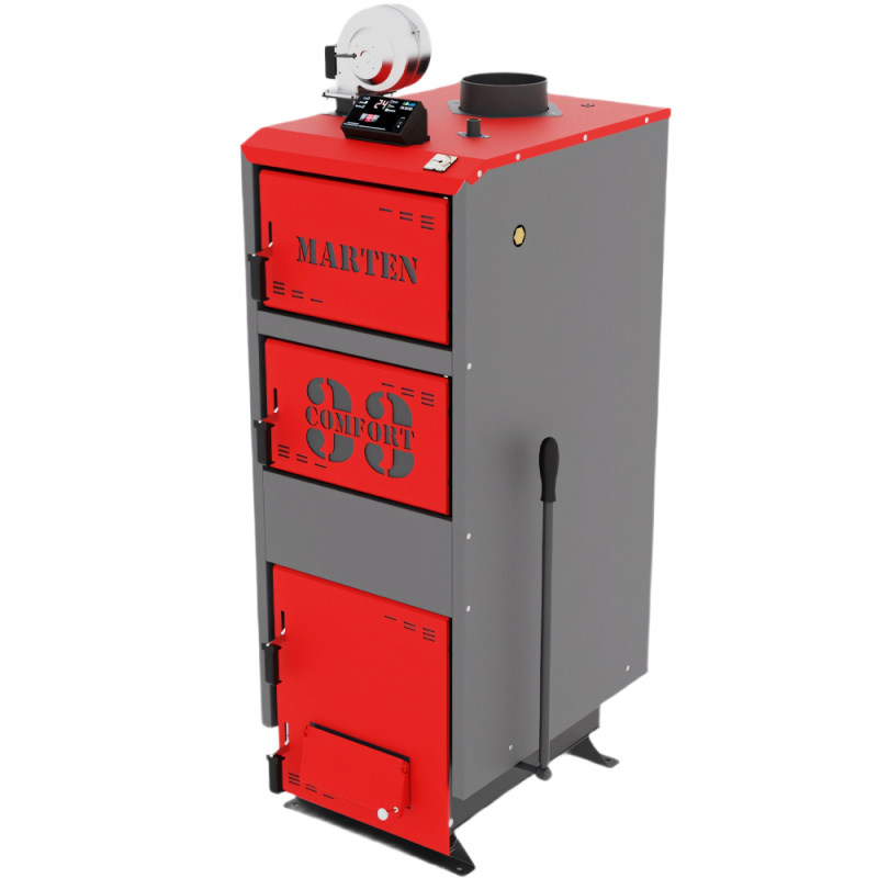 Marten Comfort 33 – твердотопливный котел длительного горения, тепловая мощность которого позволяет отапливать помещение до 330 м2. Управляется с помощью электронного регулятора температуры. Подходит для отопления жилых, бытовых, коммерческих объектов с системой центрального отопления.