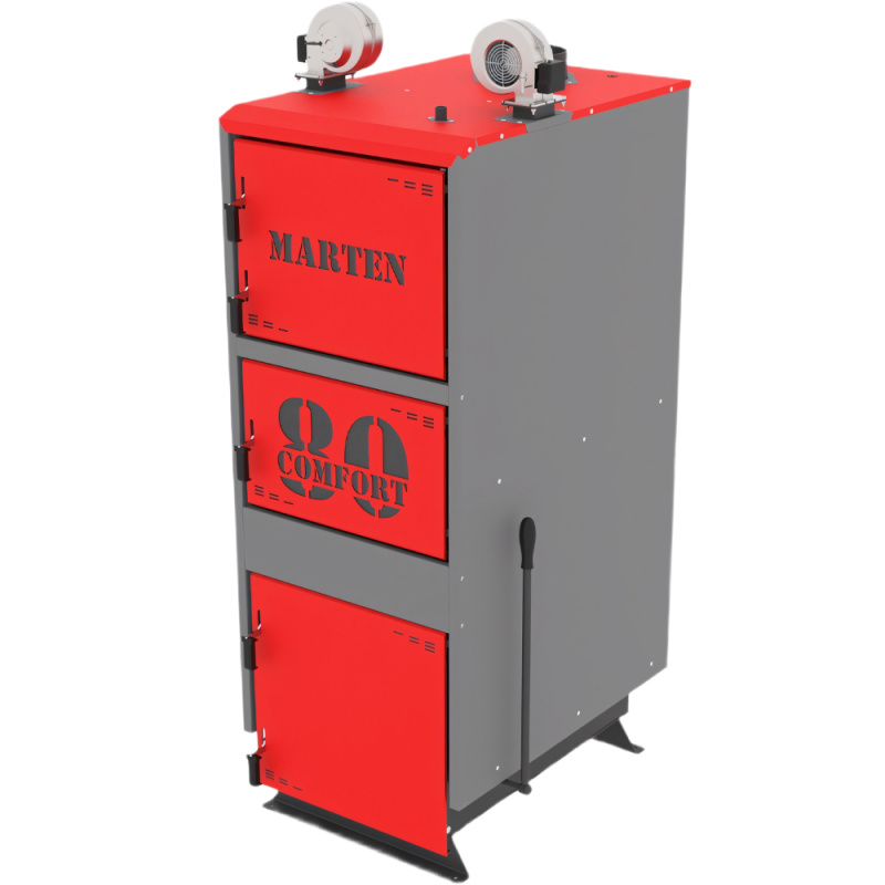 Marten Comfort 80 – твердотопливный котел длительного горения, тепловая мощность которого позволяет отапливать помещение до 800 м2. Управляется с помощью электронного регулятора температуры. Подходит для отопления жилых, бытовых, коммерческих объектов с системой центрального отопления.