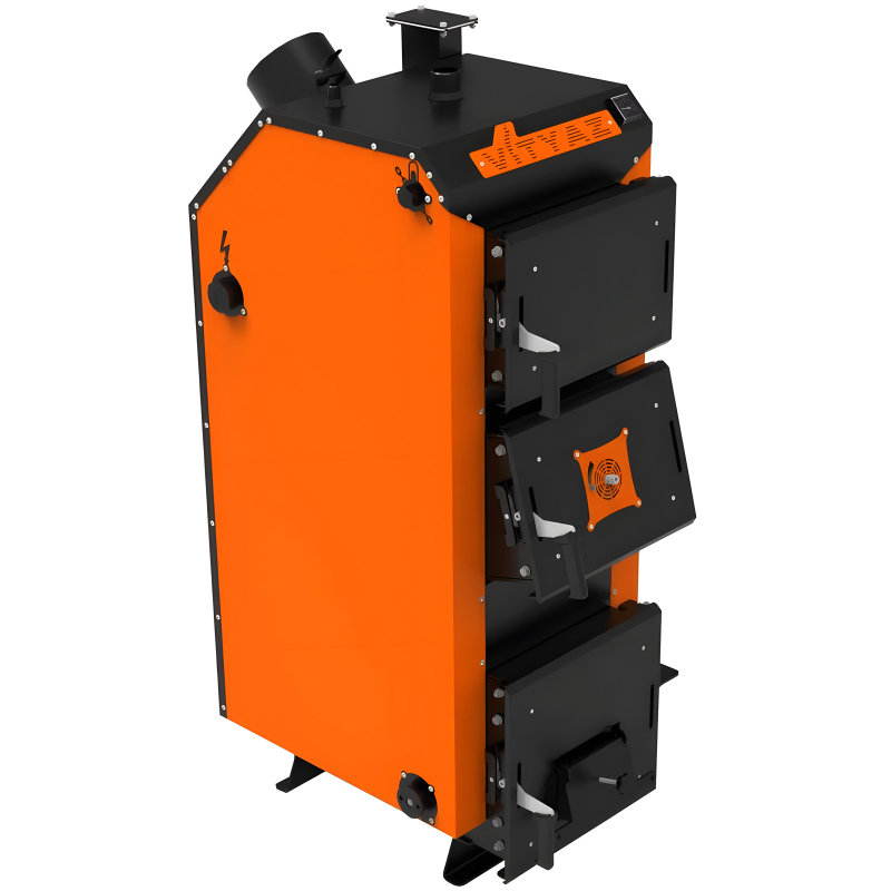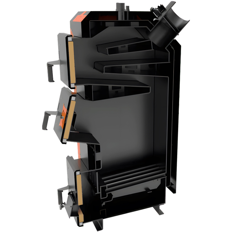 - Тривала автономна робота – велика та глибока топка на 60 літрів дозволяє завантажувати об'ємні порції дров чи вугілля, забезпечуючи довготривале горіння на одному завантаженні. Це економить ваш час, позбавляючи необхідності постійно чергувати біля котла для підкидання палива.