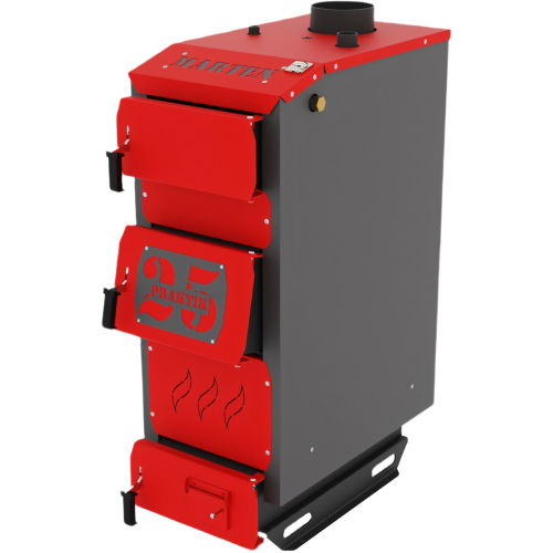 Твердотопливный котел Мартен Практик 25 кВт – модель с увеличенным теплообменником (водные полки) и объемной камерой сгорания, предназначенный для отопления зданий от 150 до 220 м2. Котел автономный, безопасный, простой и неприхотливый в обслуживании.