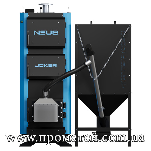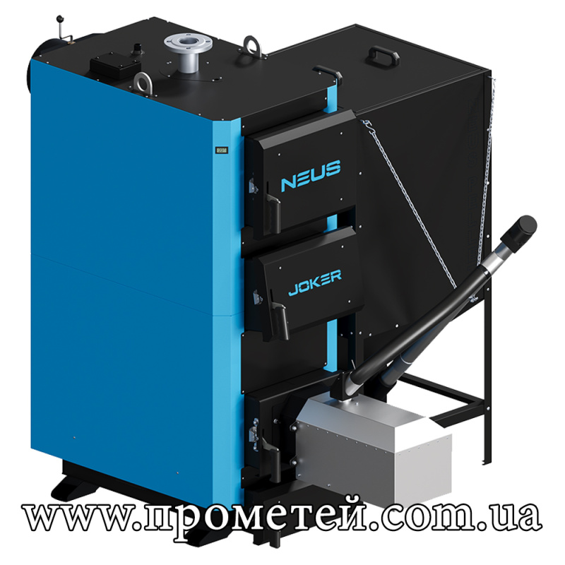 NEUS Joker Pellet 75 – пелетний котел з факельним пальником, оснащеним рухомими колосниками для самоочистки. Призначений для опалення в атоматичному режимі приміщень площею до 750 м² з можливістю переобладнання у режим ручного завантаження.