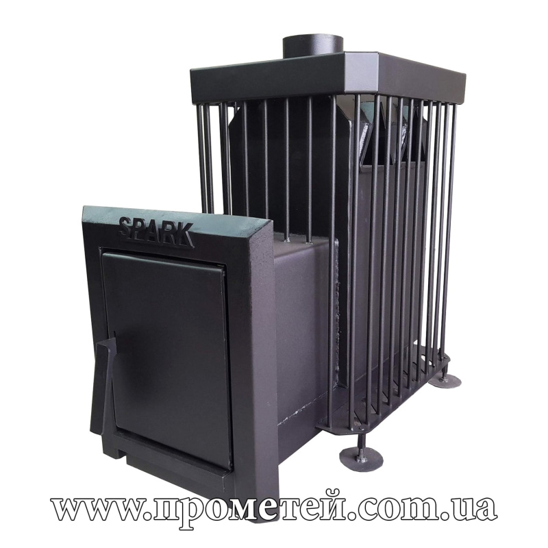 Піч для бані Spark S.k.18.00 – ефективна дров'яна піч кам'янка для парилки до 20 куб. м, з об'ємним кошиком для каміння та кожухом з прутів. Призначена для опалення та підтримки тепла в парних бань та саун об'ємом 15-20 м3. Виготовлена зі сталі товщиною 4 мм та верхньою плитою 8 мм.