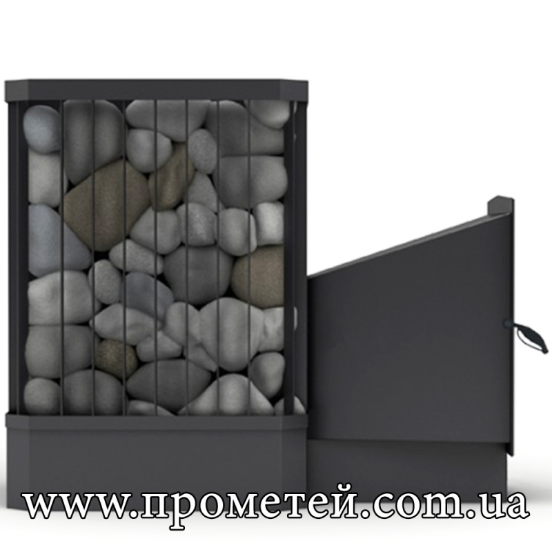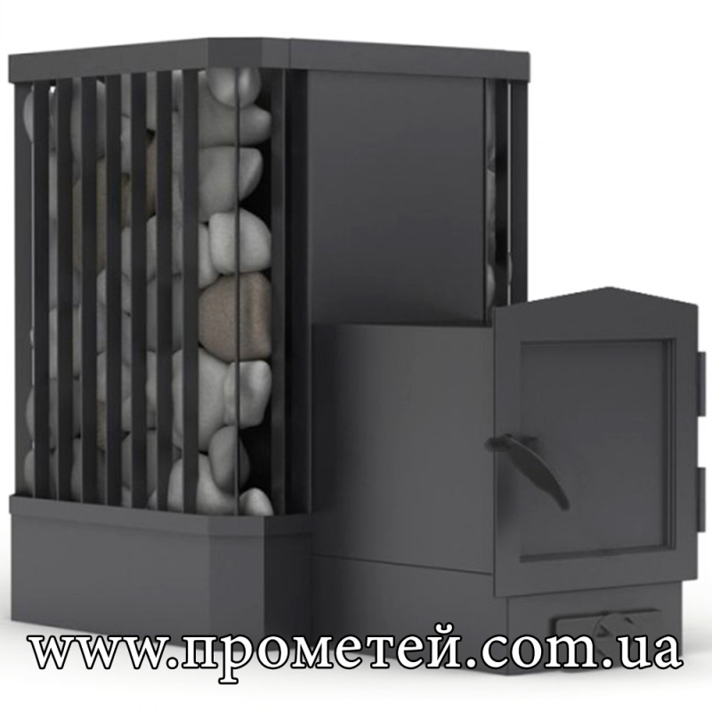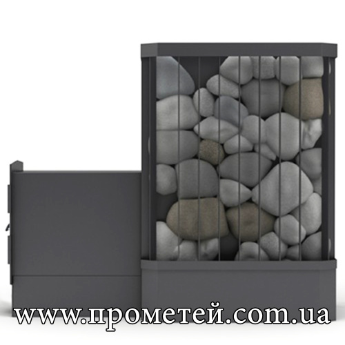 Піч для лазні та сауни Ребро 30 м3 з виносом – потужна банна піч з відкритою кам'янкою, розрахована на парні об'ємом до 30 куб. м. Особливістю моделі є зручний виносний топочний канал, що дозволяє здійснювати завантаження дров із суміжного приміщення. Конструкція доповнена відкритою кам'янкою, яка забезпечує швидкий нагрів каменів та ефективну генерацію пари.