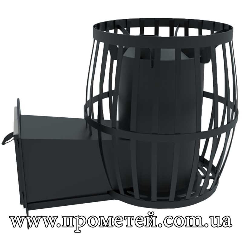 Піч для лазні Бочка 20 м3 з виносом – дров'яна піч-кам'янка для парних об'ємом до 20 куб. м, з можливістю закладки дров з передбанника.