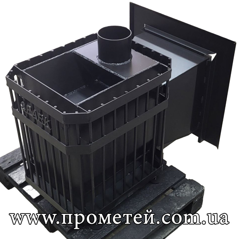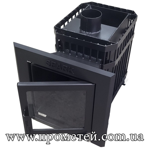 Піч для бані Spark S.k.12.00 – ефективна дров'яна піч кам'янка для парилки до 18 куб. м, з об'ємним кошиком для каміння та кожухом з прутів. Призначена для опалення та підтримки тепла в парних бань та саун об'ємом 14-18 м3. Виготовлена зі сталі товщиною 4 мм та верхньою плитою 8 мм.