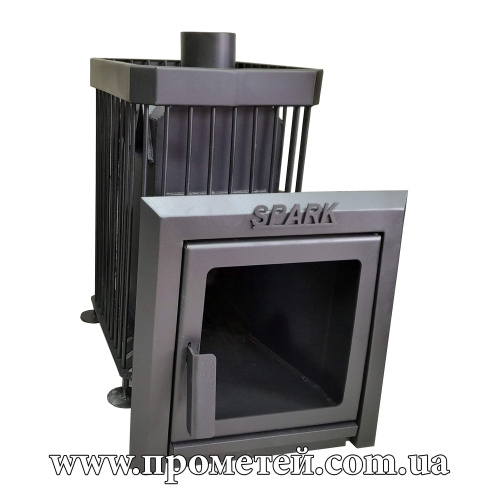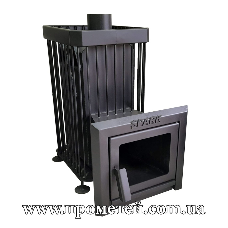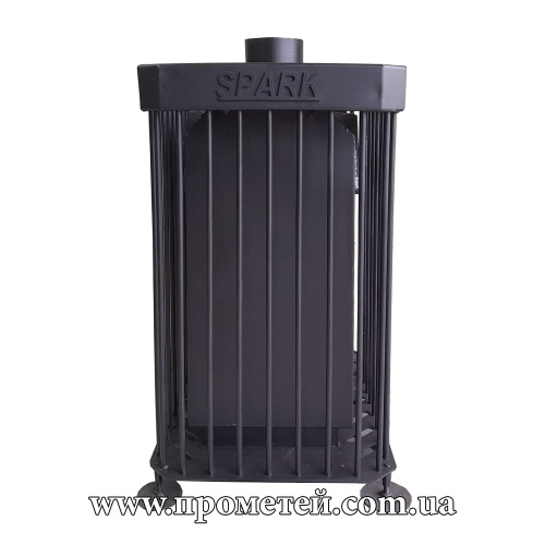 Піч для бані Spark S.k.00 – ефективна дров'яна піч кам'янка для парилки до 25 куб. м, з об'ємним кошиком для каміння та кожухом з прутів. Призначена для опалення та підтримки тепла в парних бань та саун об'ємом 18-25 м3. Виготовлена зі сталі товщиною 4 мм та верхньою плитою 8 мм.
