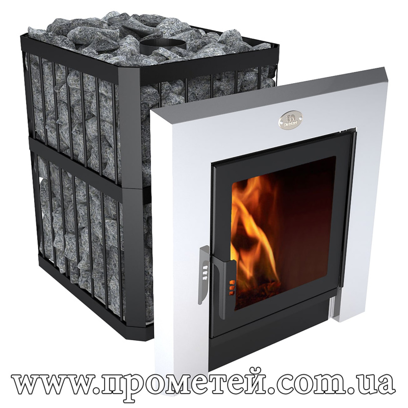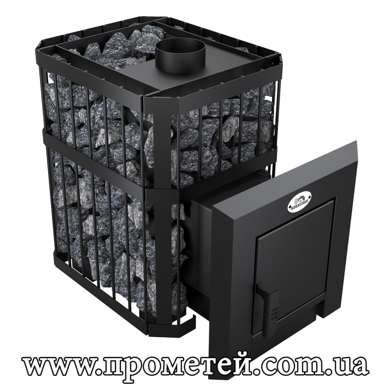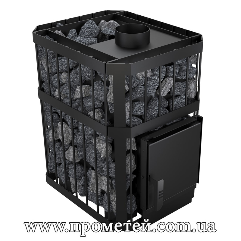 Винос (довжина складає 200 мм) дозволяє вбудувати піч у стіну, щоб топити її не з самої парильні, а із спеціально призначеного для цього приміщення. Завдяки особливій конструкції топки та S-подібним подвійним димохідним каналам камені прогріваються не тільки знизу (через розташовану над топкою потовщену плиту), а й з боків.