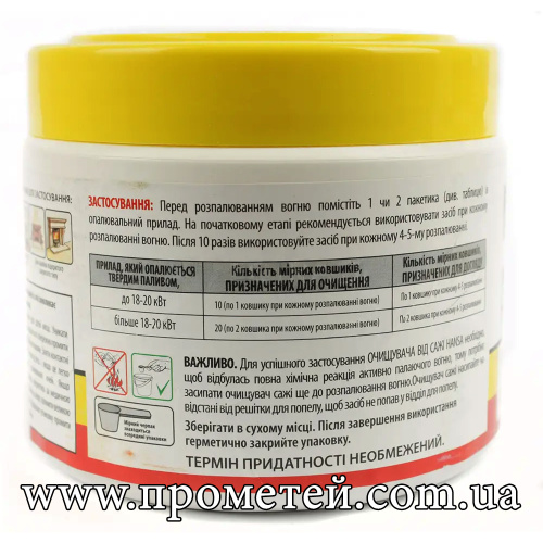 Для одноразового очищення димоходу потрібно близько 30 грамів даного засобу, що значно економніше, ніж послуги професійного сажотруса. Крім економії, важливо відзначити, що регулярне використання цього засобу для видалення сажі також збільшує термін служби опалювального обладнання.