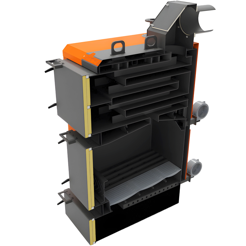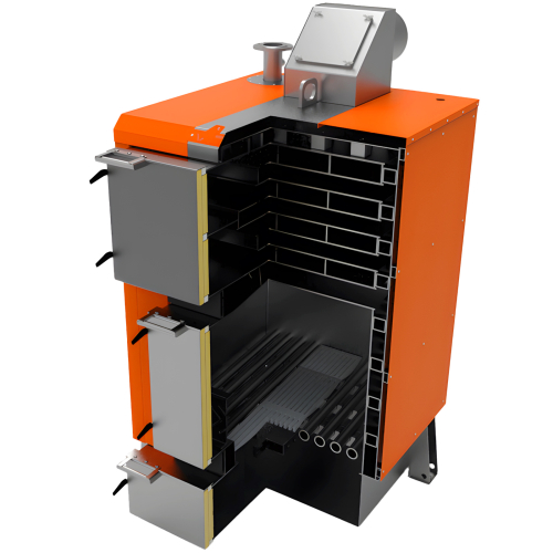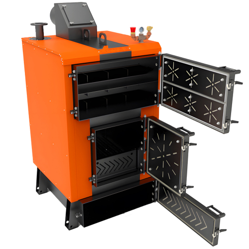 - Універсальність у виборі палива та економія на відходах – котел ефективно спалює дрова, вугілля всіх марок, торф'яні та тирсові брикети, а також відходи деревини. Це дозволяє підприємствам суттєво економити, використовуючи найдешевше доступне паливо або утилізуючи власне горюче сміття.