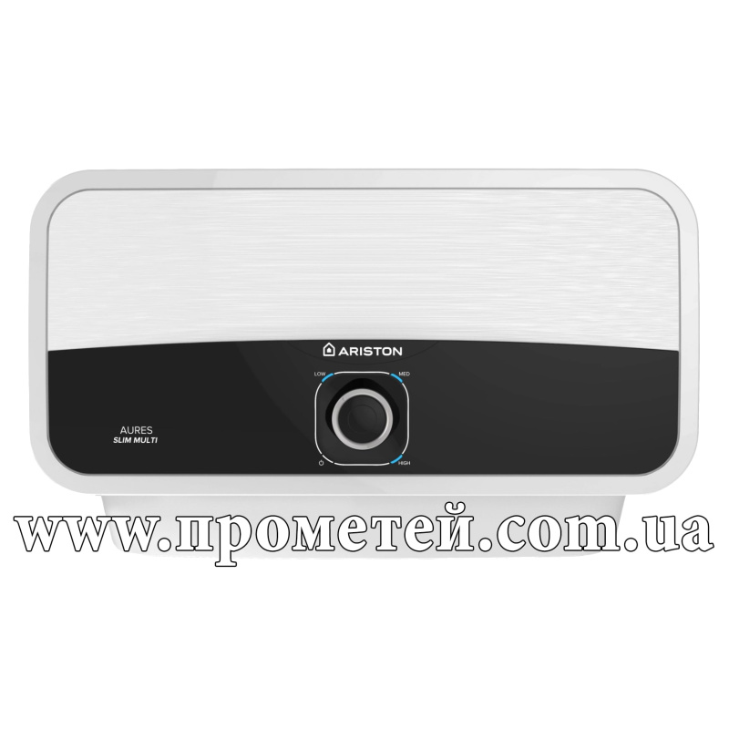 Ariston AURES SM 7.7 – електричний проточний водонагрівач потужністю 7.5 кВт, з нижнім підключенням. Призначений для підключення до кількох точок водозабору на кухні, в гостьовому санвузлі або безпосередньо в душовій кабіні.