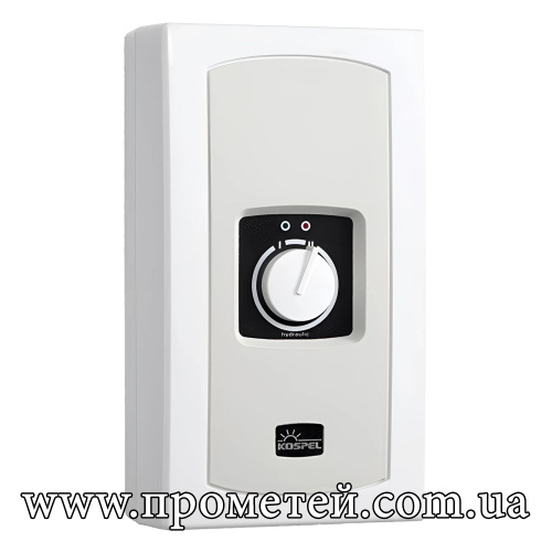 Kospel EPMH - 7.5 – проточний водонагрівач з механічною системою керування. Забезпечує продуктивність до 3,6 літрів гарячої води за хвилину та можливість підключення до кількох точок водорозбору. Живлення від мережі 220 В.