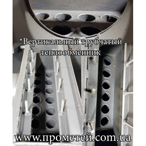 - Конвекційні вертикальні канали (водяні полиці) для відбору тепла з димохідних газів.