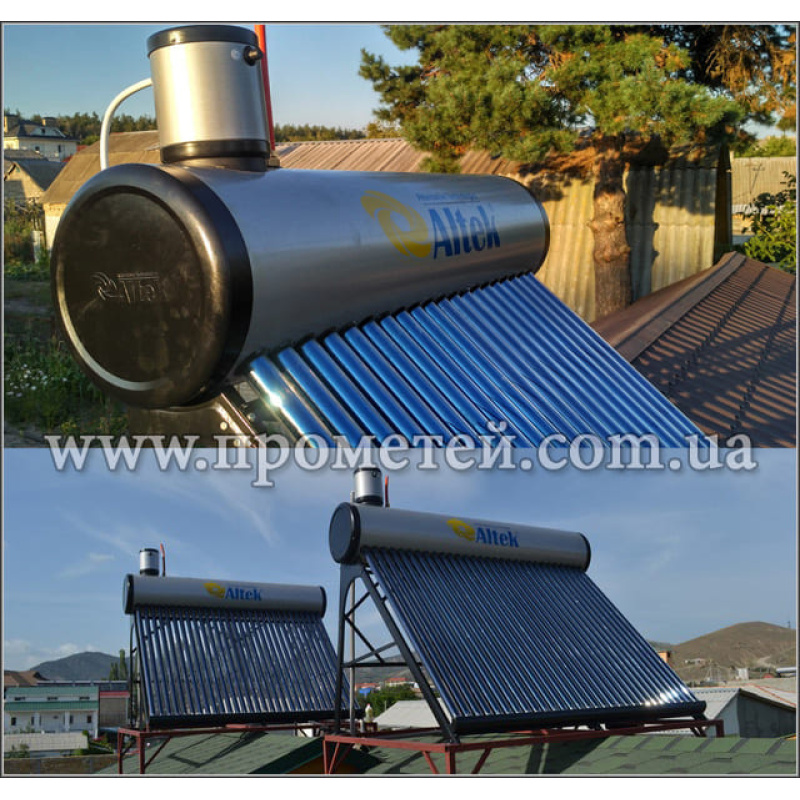 Термосифонний безнапірний сонячний колектор Altek SD-T2L-15 – це пристрій, що перетворює сонячну енергію на теплову. Він використовується для приготування гарячої води в побутових та господарських цілях. По суті, це вакуумний колектор з баком.