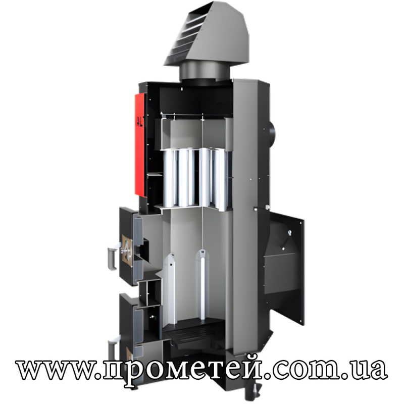 - Універсальність – можливість використання різних видів твердого палива (дрова, брикети, пелети, деревні відходи тощо)