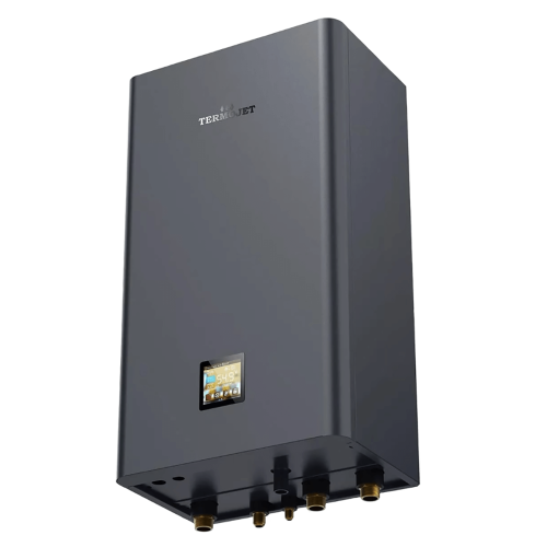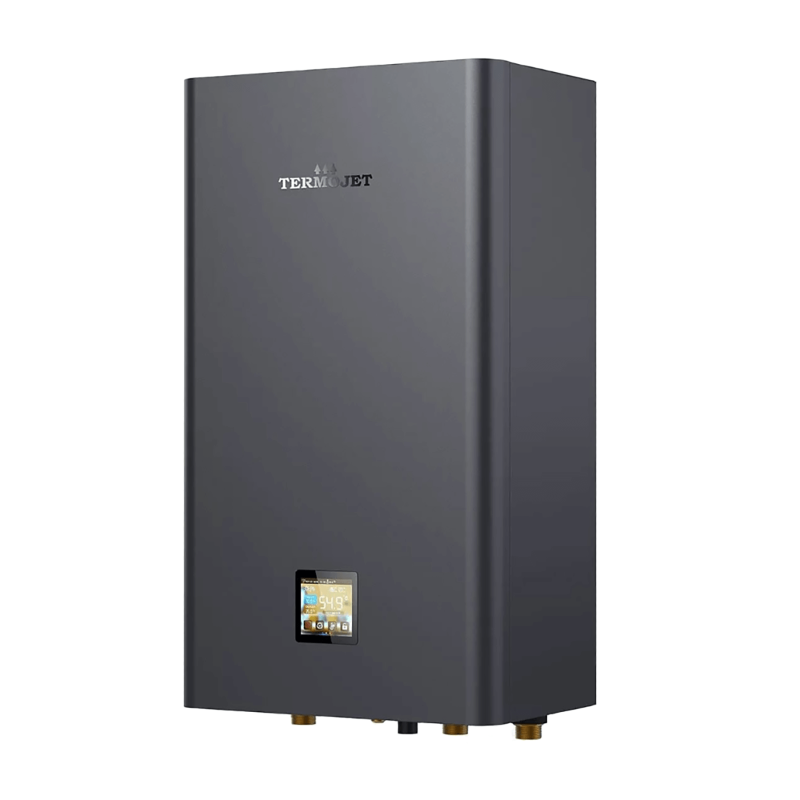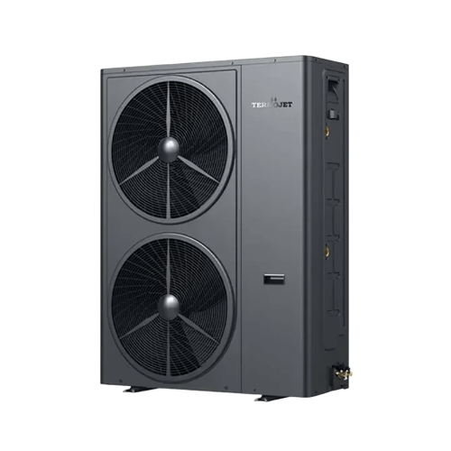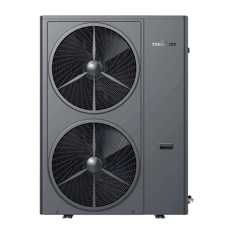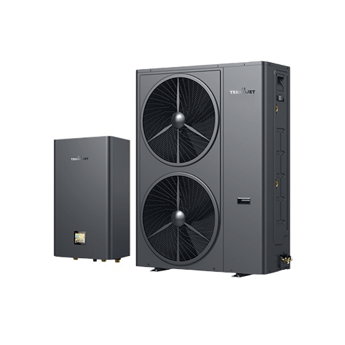 Termojet Suntide Split 200HCR4T – це інверторна спліт-система типу "повітря-вода" серії Termojet Split Premium з потужністю 20 кВт для опалення, охолодження та гарячого водопостачання житлових будівель площею до 300 м². Конструкція складається з двох блоків: зовнішнього, який встановлюється на вулиці, та внутрішнього, що монтується в приміщенні, з'єднаних між собою фреоновою магістраллю для транспортування тепла. Ключова перевага спліт-системи – повна відсутність ризику замерзання води у зовнішньому блоці, оскільки вода циркулює виключно у внутрішньому модулі, що забезпечує надійну роботу навіть при -25°C.