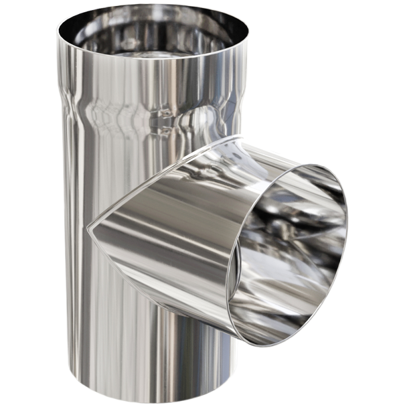 Трійник димохідний 87° одностінний діаметр 100-400 мм, з нержавіючої сталі AISI 321, товщиною 1мм – це ключовий елемент димохідної системи, що забезпечує з'єднання вертикальної та горизонтальної ліній димоходу під кутом 87°. Використовується для розподілу потоку димових газів у різні напрямки, встановлення ревізії для обслуговування димоходу та організації відведення конденсату з труби. Одностінна неутеплена конструкція призначена для встановлення у внутрішніх частинах димохідних та вентиляційних систем з високими температурними навантаженнями.